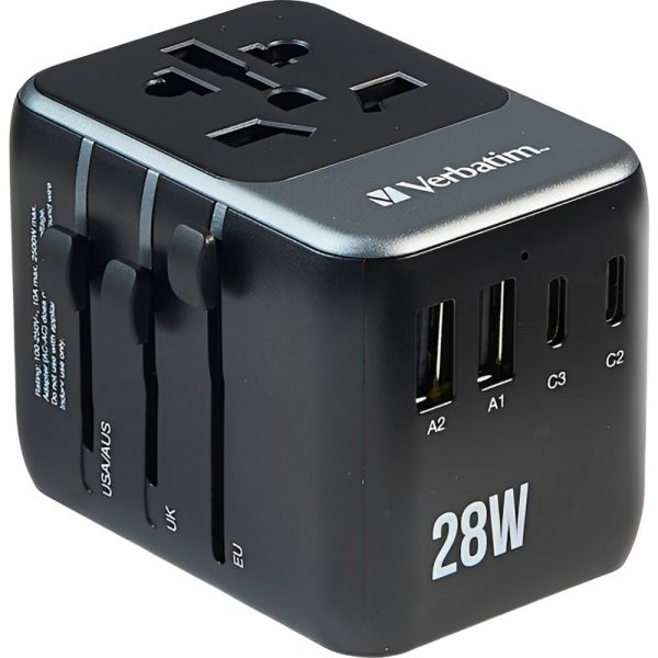 El Adaptador Universal de Enchufe Verbatim UTA-07 28 W es una solución de carga eficiente y compacta, ideal para viajeros frecuentes. Compatible con más de 180 países, permite cargar hasta seis dispositivos simultáneamente mediante sus puertos USB-A y USB-C, y admite Power Delivery (PD) de 28 W y Quick Charge (QC) de 18 W para una carga rápida. Su diseño compacto facilita su transporte y cuenta con una tapa de seguridad para evitar accidentes. Además, es resistente al fuego, ofreciendo mayor seguridad.