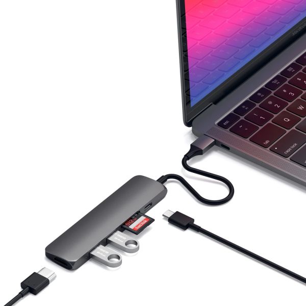 ADAPTADOR MULTIPUERTO DELGADODE ALUMINIO TIPO C V2