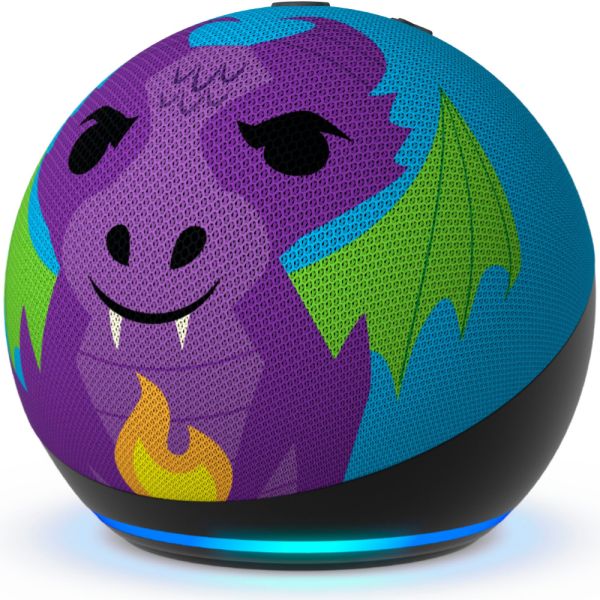 Conheça o alto-falante inteligente Alexa Echo Dot Kids Edition 5° Gen com Alexa. O design divertido apresenta um viva-voz atualizado, oferecendo vozes claras e som vibrante. As crianças podem pedir à Alexa para tocar música, obter ajuda com o dever de casa, ouvir histórias para dormir e muito mais.
