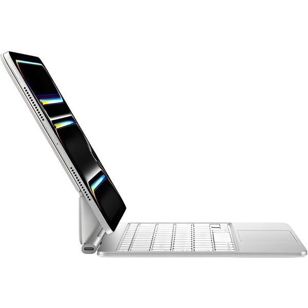El Apple Magic Keyboard para iPad Pro 11" M4 MWR03LL/A en color blanco (Inglés) es el complemento ideal para tu iPad Pro de 11". Este teclado no solo añade protección adicional, sino que también transforma tu iPad en una potente herramienta de productividad similar a una laptop. Diseñado específicamente para el idioma inglés de EE. UU., el teclado retroiluminado incluye mecanismos de interruptor de tijera con un recorrido de tecla de 1 mm, garantizando una escritura precisa y silenciosa. La fila de funciones con 14 teclas te permite ajustar el volumen, el brillo y otros controles esenciales al instante. El panel táctil de vidrio de gran tamaño facilita la navegación por tu iPad mediante gestos multitáctiles intuitivos y ofrece una retroalimentación háptica precisa. Gracias al diseño de voladizo flotante, puedes ajustar el ángulo de visión para optimizar tu comodidad. La duradera bisagra de aluminio mecanizado incluye un conector USB-C con capacidades de paso, permitiéndote cargar tu iPad mientras lo usas. Además, la funda plegable proporciona protección tanto frontal como posterior, salvaguardando tu dispositivo durante los viajes. Este teclado es ideal para profesionales, estudiantes y cualquier persona que desee maximizar su experiencia con el iPad Pro.