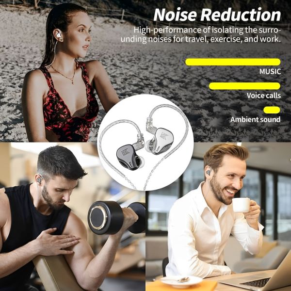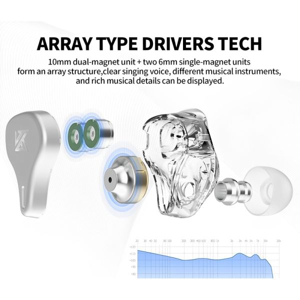 Los auriculares KZ DQ6 3.5 son la elección perfecta para los amantes de la música que buscan una experiencia de audio de alta fidelidad. Equipados con tecnología de auriculares dinámicos de tres unidades tipo matriz, estos auriculares son un referente en el ámbito de la tecnología de sonido. Con una unidad dinámica magnética dual de 10 mm y dos unidades dinámicas magnéticas simples de 6 mm, el KZ DQ6 ofrece una calidad de sonido Hi-Fi que destaca por su potente poder analítico, permitiendo disfrutar de voces claras y detalles musicales ricos y distintivos. La comodidad es clave, y gracias a sus tapones de silicona para los oídos y su concha tallada en aleación de zinc, el uso prolongado de los auriculares KZ DQ6 es un placer. Además, la tecnología de reducción de ruido físico y la estructura acústica de división de frecuencia aseguran una inmersión total sin distracciones. Ideal para escuchar música en casa, durante viajes o en el trabajo, estos auriculares ofrecen una excelente respuesta de frecuencia y una dinámica de alta frecuencia tipo matriz que amplía el rango del campo sonoro, asemejándose al sonido del escenario. Con la función de cable desmontable, los usuarios pueden optar por mejorar la calidad del sonido o convertirlos en auriculares Bluetooth mediante cables de actualización y adaptadores compatibles.