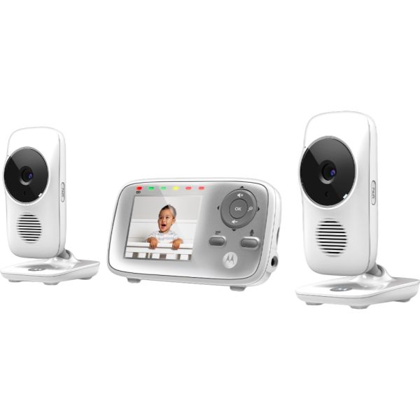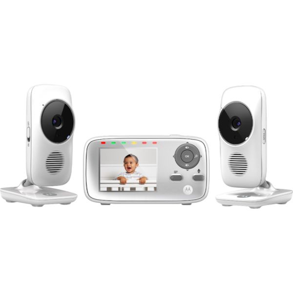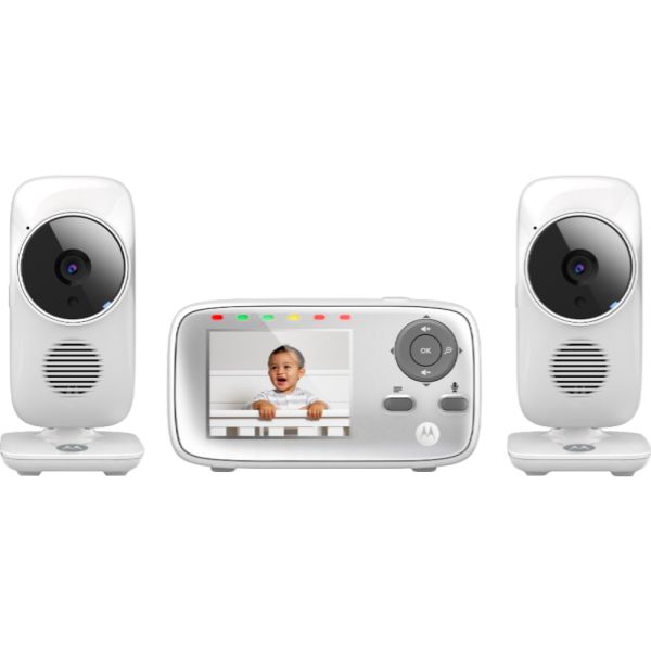 El baby call Motorola MBP483-2 brinda a los padres la seguridad de que su hijo está descansando en paz sin despertarlos. La unidad de padres muestra una vista de la habitación del bebé a través de una de las dos cámaras y ofrece una opción de visualización de pantalla única o dividida. También cuenta con una función de zoom digital e incluso comunicación bidireccional para que pueda hablar con su bebé a través de la unidad. Míralos de noche con visión infrarroja. Este sistema de vigilancia digital para bebés incluso reproduce canciones de cuna para ayudar a los bebés a conciliar el sueño. La unidad para padres funciona dentro de los 300 metros de las cámaras y emite una alerta para avisarle cuando se sale del alcance. El baby call MOTOROLA MB483-2 capta ruidos con el micrófono de alta sensibilidad y muestra el nivel de sonido con un indicador LED.