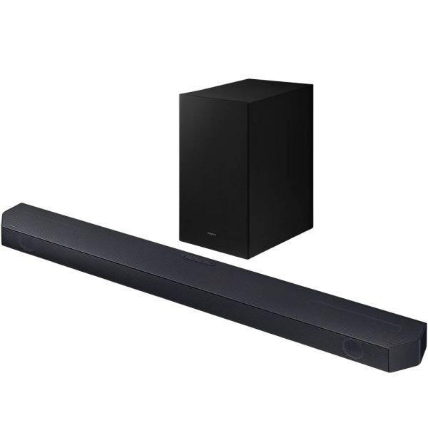 La Barra de Sonido Samsung HW-Q600C 3.1.2 CH 360 W Bluetooth es la solución perfecta para quienes buscan una experiencia de audio inmersiva y de alta calidad. Con una impresionante potencia de 360 vatios, esta barra de sonido garantiza una reproducción sonora nítida y profunda, ideal para disfrutar de tus películas, series y música favoritas. Su novedoso sistema de canal 3.1.2 ofrece una sensación de sonido envolvente, colocando al usuario en el centro de la acción gracias a sus altavoces dedicados para efectos de altura. La conectividad mediante Bluetooth facilita la integración con tus dispositivos móviles y televisores, eliminando la necesidad de cables y asegurando una instalación ordenada y sin complicaciones. Por si fuera poco, esta barra de sonido cuenta con una interfaz HDMI, permitiendo una conexión directa y rápida a otros dispositivos como consolas de videojuegos y reproductores Blu-ray. Fabricada por Samsung, un líder mundial en tecnología, este modelo en color negro se integra fácilmente en cualquier sala de estar, aportando un toque de elegancia y modernidad. La Barra de Sonido Samsung HW-Q600C es ideal para quienes buscan optimizar su entretenimiento en casa, brindando una experiencia auditiva superior y sin interrupciones. Eleva tu experiencia multimedia con esta barra de sonido de alta gama.