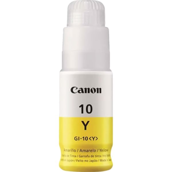 La botella de tinta Canon GI-10 para Impresoras Canon Pixma contiene una fórmula de tinta a base de pigmentos para producir un texto nítido y preciso. Maximice la productividad e imprima hasta 8300 páginas en negro y 7700 páginas a color. ¡Ahorre en el costo operativo con cada impresión! El diseño inteligente de la botella de tinta facilita su uso y minimiza derrames accidentales y manchas.