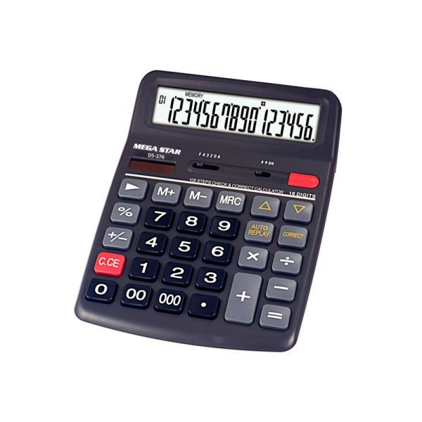 La Calculadora Mega Star DS276 de 16 dígitos es ideal para profesionales de negocios en cualquier lugar. Realiza cálculos de operaciones aritméticas elementales: suma, resta, división, multiplicación y calcula porcentaje. Además, cuenta con memorias M+, M- y MRC.