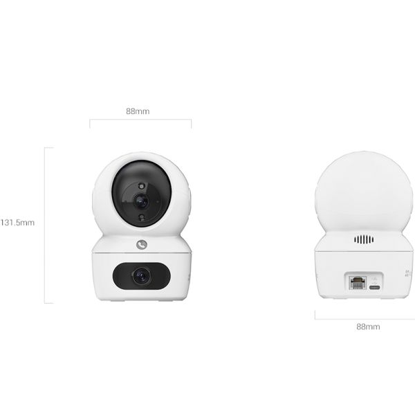 La Ezviz H7c Dual es una cámara de vigilancia innovadora que ofrece una protección completa con sus dos lentes de 2K⁺. Su lente fija y el objetivo panorámico basculante trabajan en conjunto para cubrir toda la habitación, eliminando los puntos ciegos y proporcionando una visión detallada. Equipada con detección de movimiento humano y sonido fuerte, la H7c Dual sigue automáticamente a las personas y notifica cualquier actividad sospechosa en tiempo real. Su visión nocturna en color y el modo de patrulla personalizada aseguran una vigilancia continua, incluso en la oscuridad. Compatible con Wi-Fi 6 y asistentes de voz como Alexa y Google Assistant, la H7c Dual ofrece una integración fluida con dispositivos inteligentes. Además, el almacenamiento flexible en microSD y la opción de EZVIZ CloudPlay garantizan que sus videos importantes siempre estén seguros. Con cifrado avanzado y una configuración sencilla mediante Bluetooth, la Ezviz H7c Dual combina seguridad, conveniencia y tecnología de punta para proteger su hogar.