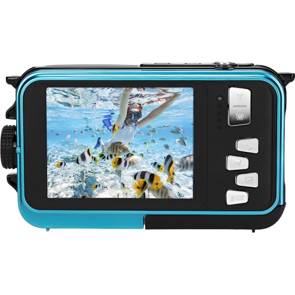 La cámara digital WP8000 de Agfaphoto está diseñada para capturar fotos y videos en condiciones extremas, siendo compacta y resistente al agua. El WP8000 está equipado con un sensor CMOS de alto rendimiento y una pantalla dual para duplicar sus prestaciones, con la opción de tomar un selfie sin perder nunca el encuadre. También puedes filmar a través de la pantalla LCD frontal de 1.8 '', asegurando así que estás presente en el vídeo. La pantalla LCD principal de 2.7'' le permite ver cómodamente fotografías y vídeos clásicos. La impermeabilidad del WP8000 multiplica las opciones de uso, por eso existen diferentes modos para optimizar la creación de tus fotografías y vídeos: deporte, playa, tarde, noche, paisaje, retrato, e incluso el modo automático, donde te guías por el software interno.