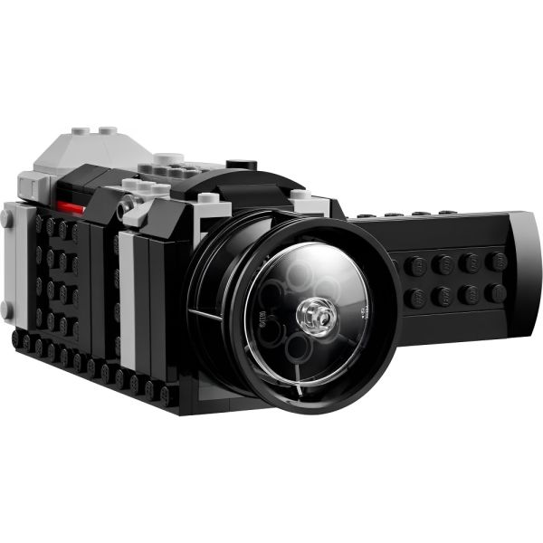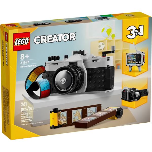 La Cámara Retro LEGO Creator 31147 3 en 1 es el set definitivo para los amantes de la tecnología vintage y los aficionados a la construcción. Con 261 piezas, este innovador set permite a niños y niñas de 8 años o más crear tres aparatos retro diferentes utilizando los mismos ladrillos: una cámara clásica, una videocámara y un televisor de juguete. La cámara de juguete incluye detalles auténticos como un objetivo móvil, disparador, carrete y correa, brindando una experiencia de juego inmersiva. La videocámara cuenta con una “pantalla” desplegable para simular la grabación, y el televisor está equipado con una antena conectada. Este set no solo ofrece horas de entretenimiento creativo, sino que también desarrolla habilidades importantes como la coordinación mano-ojo y la capacidad de resolución de problemas. Las dimensiones compactas de la cámara, que mide aproximadamente 7 cm de altura, 13 cm de anchura y 8 cm de profundidad, la hacen perfecta para jugar en cualquier lugar.