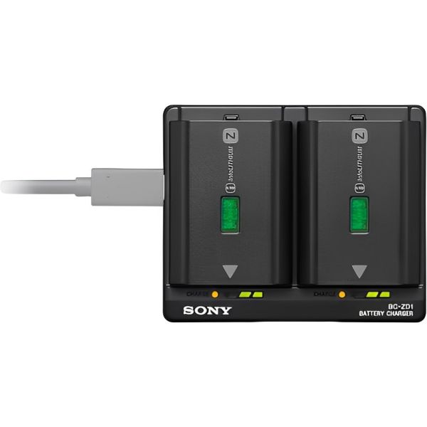 Descubre la eficiencia y comodidad con el Cargador de Batería Sony BC-ZD1, diseñado específicamente para las baterías Sony NP-FZ100. Este cargador tipo USB PD permite cargar simultáneamente dos baterías de alta capacidad en tan solo 155 minutos, asegurando que nunca te quedes sin energía durante tus sesiones fotográficas. Equipado con indicadores LED, el BC-ZD1 ofrece una visión clara del estado de carga de cada batería, mostrándolo en cinco pasos distintos. Su diseño compacto y portátil, con dimensiones de 84,5 x 29,2 x 70,0 mm, lo hace ideal para profesionales del mundo audiovisual que necesitan optimizar su espacio de trabajo sin sacrificar funcionalidad. La seguridad es una prioridad con el Cargador Sony BC-ZD1. Está diseñado para ofrecer un funcionamiento seguro, incorporando tecnología que disipa el calor y monitorea la temperatura, protegiendo así tus equipos más valiosos. Además, con su embalaje respetuoso con el medioambiente, sin plásticos, este cargador reitera el compromiso de Sony con la sostenibilidad. Ideal para fotógrafo en movimiento o para quienes trabajan en el set de grabación, el cargador Sony BC-ZD1 es una excelente elección para mantener tus baterías listas y cargadas.