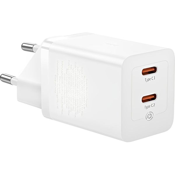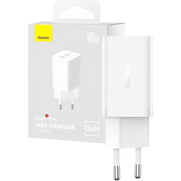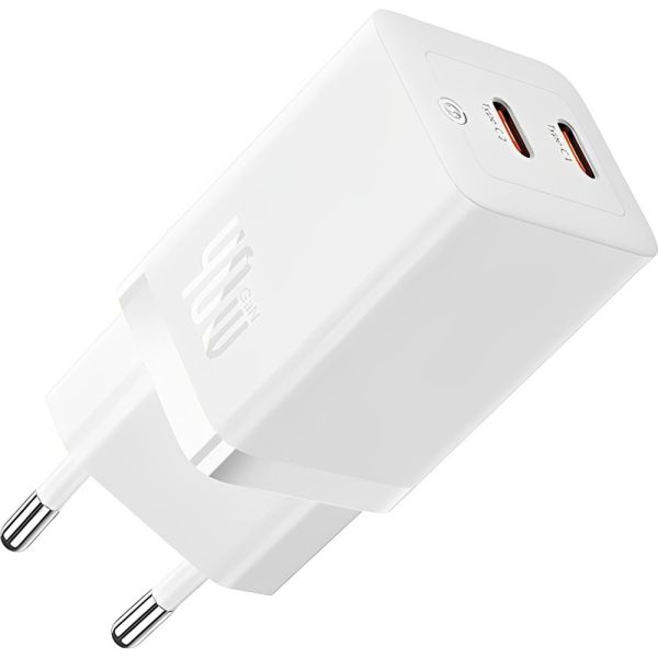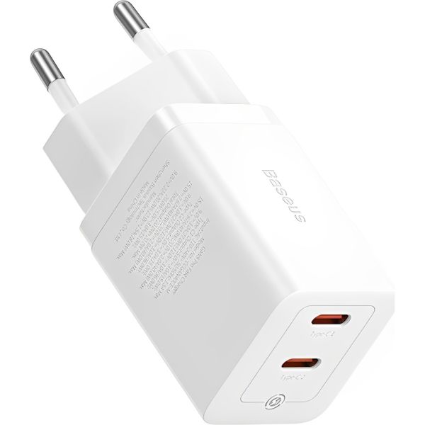 Descubre el cargador de pared Baseus CCGP180102 GaN5 Pro USB-C, un accesorio innovador que transforma la manera en que cargas tus dispositivos. Diseñado en elegante color, este cargador compacto y ligero, de 77 gramos y dimensiones de 65 x 33.5 x 29.5 mm, se adapta perfectamente a tu espacio de vida o a tu mochila cuando estás de viaje. Equipado con tecnología innovadora de nitruro de galio (GaN), este cargador no solo es eficiente en energía sino también seguro, previniendo el sobrecalentamiento y asegurando una larga vida útil. Con una potencia máxima de 40 W distribuida en dos puertos USB-C, podrás cargar hasta dos dispositivos simultáneamente. Imagina cargar tu MacBook Air hasta un 70% en tan solo 60 minutos, o tu iPhone 14 Pro al 56% en aproximadamente 30 minutos. Gracias a la tecnología BCT integrada, este cargador ajusta la corriente óptima para cada dispositivo, garantizando una carga rápida y segura. Este cargador de Baseus es ideal para aquellos que buscan eficiencia y seguridad, ofreciendo protección contra sobrevoltaje, sobrecorriente y cortocircuitos. Prepárate para experimentar una carga rápida y segura donde quiera que estés.