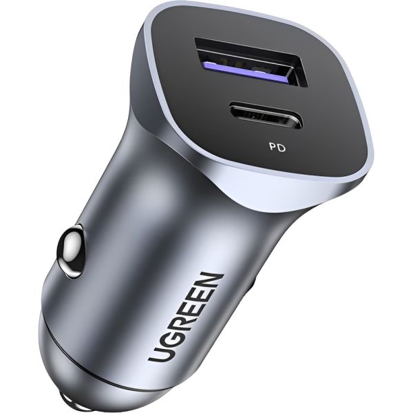 El cargador para auto Ugreen 40858 30 W USB-C Gris/Negro es el accesorio esencial para mantener tus dispositivos electrónicos siempre cargados mientras te encuentras en movimiento. Equipado con tecnología de Power Delivery y PPS, este cargador rápido garantiza una carga ultrarrápida y segura, ideal para aquellos que no tienen tiempo que perder. Su diseño compacto y elegante no solo se adapta perfectamente al interior de cualquier vehículo, sino que también facilita su transporte y almacenamiento. Con una potencia de 30 W, el cargador es compatible con una amplia gama de dispositivos, desde smartphones hasta tabletas y otros gadgets, asegurando que permanezcas siempre conectado sin importar la circunstancia. La combinación de colores gris y negro le da un toque moderno y sofisticado, complementando la estética de cualquier automóvil. El Cargador para Auto Ugreen 40858 incluye tanto entrada USB-A como USB-C, proporcionando flexibilidad y adaptabilidad a diferentes tipos de cables y dispositivos. Este cargador para coche se convierte en una inversión inteligente para profesionales en movimiento, viajeros frecuentes, y cualquier persona que necesite una solución de carga rápida y eficiente para sus dispositivos móviles.