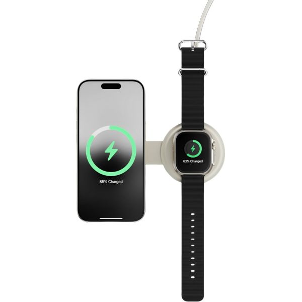 El Cargador Satechi OntheGo ST-QTG21 2 en 1 es la solución perfecta para mantener tus dispositivos Apple siempre cargados y organizados. Este cargador inalámbrico de última generación incorpora la tecnología Qi2, permitiendo una carga rápida de hasta 15 W para tu iPhone y 5 W para tu Apple Watch. Su diseño elegante y funcional está fabricado con materiales premium suaves y resistentes a rayones, asegurando durabilidad y estilo. Ideal para viajeros frecuentes o para quienes buscan optimizar su espacio en casa o en la oficina, su diseño plegable y compacto facilita su transporte y uso en cualquier lugar. El Satechi OntheGo es compatible con cargas inalámbricas Qi, Qi2 y MagSafe, aunque es importante mencionar que las carcasas de los dispositivos no deben superar un grosor de 3 mm y deben estar libres de cualquier material metálico para una carga eficiente. La función de carga rápida es exclusiva para el Apple Watch Series 7-10 y Ultra/Ultra 2, optimizando aún más su tiempo. Con el cargador Satechi OntheGo ST-QTG21, disfruta de la máxima eficiencia sin sacrificar el estilo.