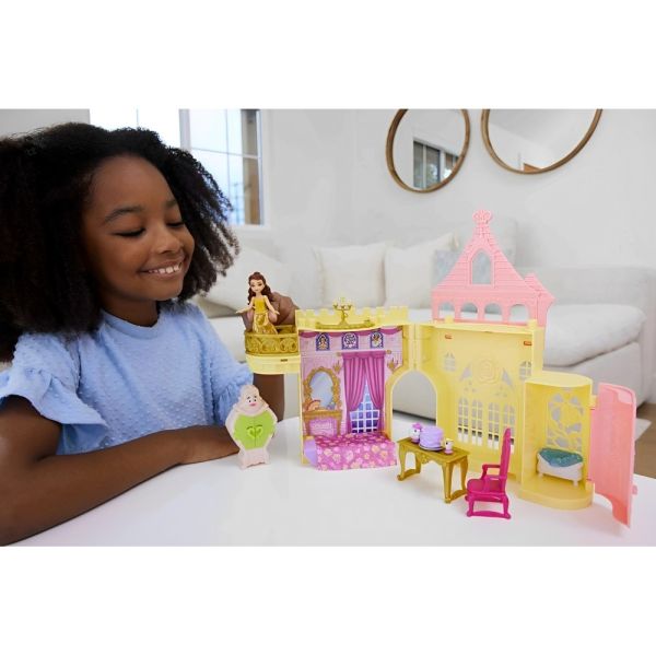 El Castillo de Bella Mattel Disney Princesas (HLW94) con Accesorios es el escenario perfecto para recrear la magia del clásico de Disney "La Bella y la Bestia". Este conjunto de juego está inspirado en el legendario cuento de hadas y ofrece a los niños un entorno lleno de detalles y sorpresas. Al abrir el castillo, se descubre una encantadora casa de muñecas con múltiples áreas de juego que evocan las escenas más memorables de la película. Entre sus características, se destacan un dormitorio de Bella con una cama plegable, un comedor con mesa giratoria y un baño secreto con una bañera de burbujas. El set viene acompañado de cuatro figuras entrañables: la Sra. Potts, Chip, Lumière y el Armario, todos con detalles auténticos. La muñeca pequeña de Bella viste su icónico atuendo amarillo, con una falda desmontable y puntos de articulación en sus extremidades, lo que permite una experiencia de juego más dinámica. Ideal para las pequeñas princesas, el castillo es portátil gracias a su asa de transporte, permitiendo diversión sin límites, ya sea en casa o en un viaje. Además, su diseño apilable maximiza el espacio de almacenamiento y ofrece una solución práctica para los padres.