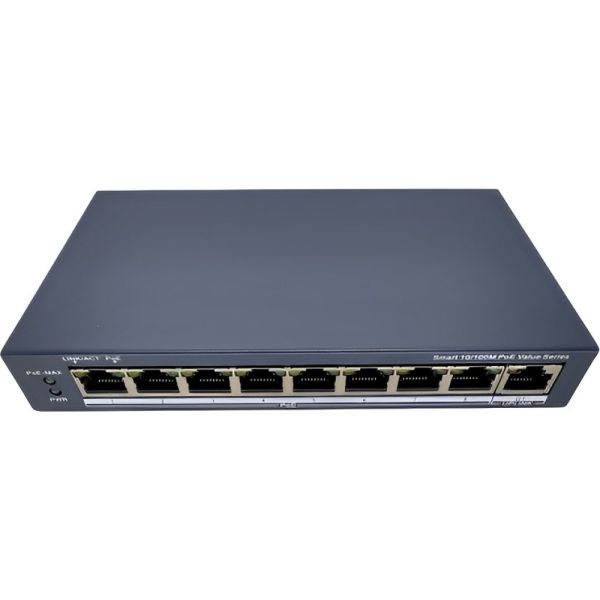 Puertos: 8x puertos PoE de 10/100 Mbps, 1x puerto RJ45 de 10/100 Mbps