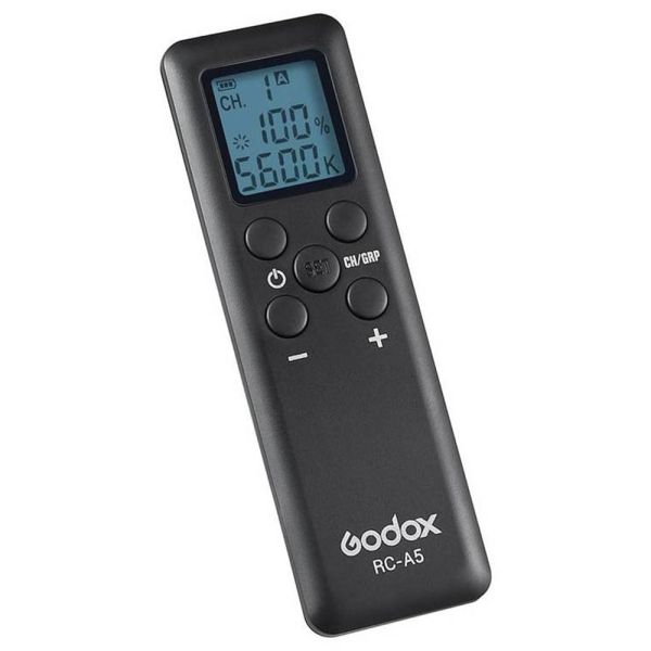 El control remoto Godox RC-A5 tiene un diseño compacto ideal para utilizarse con focos LED Godox con un alcance radio de hasta 50 metros con una frecuencia de 433MHz. Permite un control del inalámbrico del color o la intensidad de la luz en modelos de LED compatibles, funciona con 2 pilas AAA (vendido separadamente).