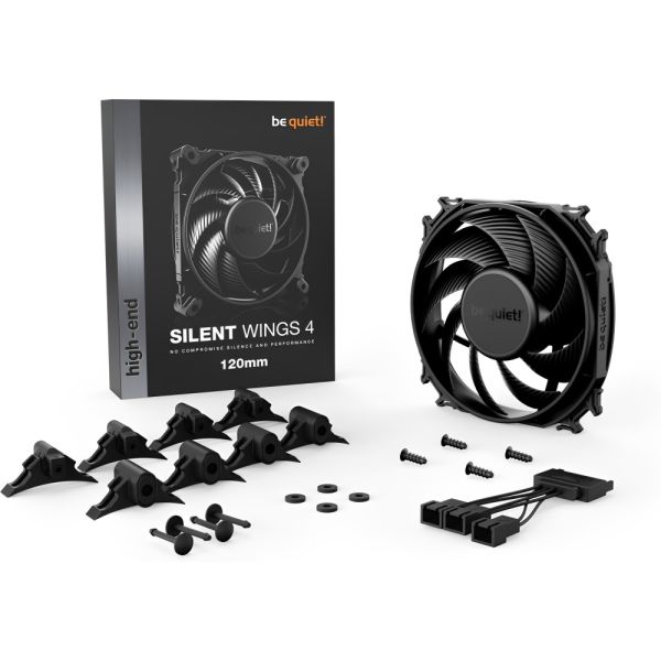 Silent Wings 4 120 mm es el ventilador ideal para todas las operaciones posibles. Ya sea en una caja, en radiadores o disipadores de calor, características como las aspas del ventilador optimizadas para el silencio y el marco del ventilador en forma de embudo hacen que Silent Wings 4 120 mm sea un ventilador que no hace concesiones entre un funcionamiento prácticamente inaudible y un alto rendimiento.Silent Wings 4 120mm combina todas las características de un ventilador prácticamente inaudible con un rendimiento extremadamente alto para las aplicaciones más exigentes.Características principales: