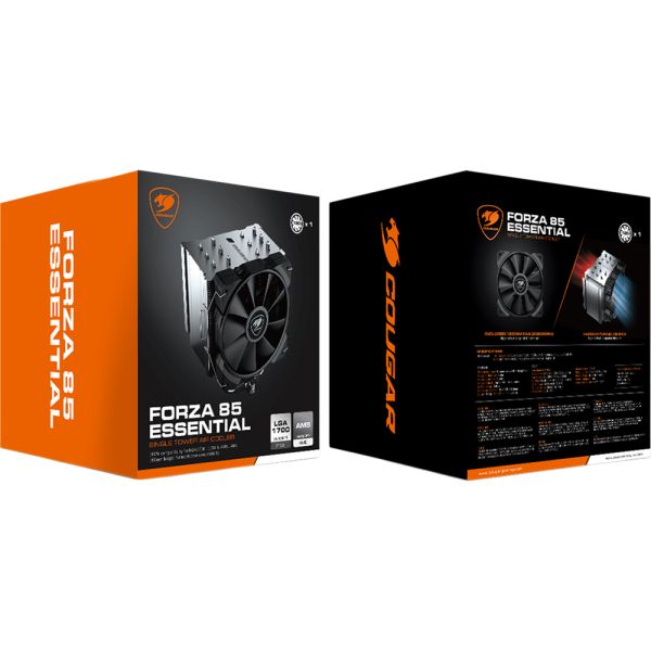 FORZA 85 ESSENTIALTorre de Refrigeración IndivualForza 85 Essential es un cooler de aire de torre única para CPUs de nivel medio/alto, que se combina con un ventilador de alto rendimiento, proporcionando a los usuarios un equilibrio óptimo entre un funcionamiento ultrasilencioso y una refrigeración extrema. Forza 85 Essential está creado para la mayoría de usuarios de alto rendimiento. (con capacidad de overclocking menor)