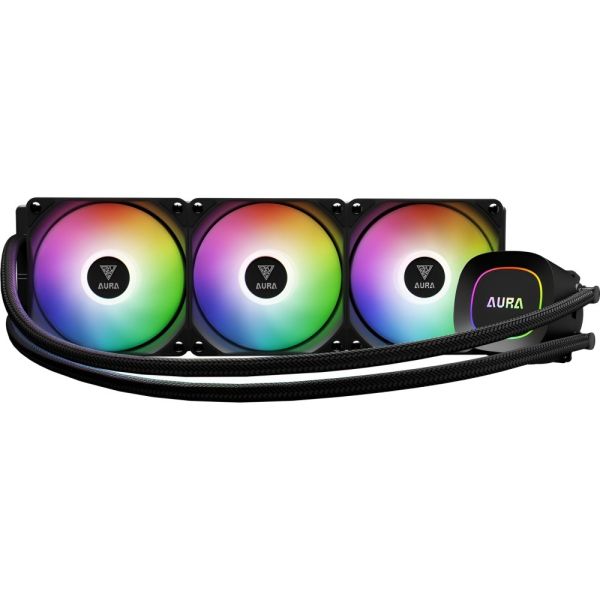 El Cooler Líquido Gamdias Aura GL360 Lite ARGB ofrece un rendimiento térmico eficiente gracias a su sistema optimizado de circulación de líquido y base de cobre mejorada. Equipado con tres ventiladores hidráulicos PWM de 120 x 120 x 25 mm, proporciona una velocidad de 800 a 1800 RPM ±10% y un impresionante flujo de aire de 73.71 CFM, lo que garantiza una refrigeración potente y silenciosa. Su radiador de 396 x 120 x 27 mm maximiza la disipación del calor, mientras que la iluminación ARGB sincronizable con placas base añade un toque visual atractivo a cualquier setup. Compatible con una amplia gama de sockets Intel (LGA 20XX / 1851 / 1700 / 1151 / 1150 / 1155 / 1156 / 1200) y AMD (AM5 / AM4 / AM3), este cooler líquido es ideal para entusiastas del rendimiento que buscan estilo y eficacia.