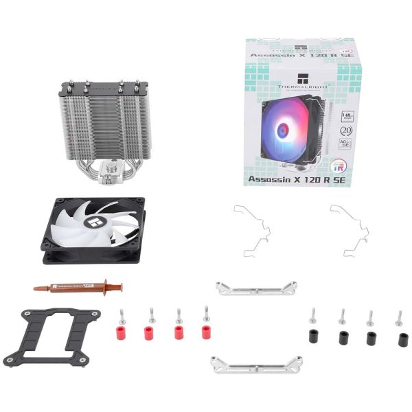 El cooler para CPU Thermalright Assassin X 120 Refined SE ARGB redefine la eficiencia térmica con su diseño compacto de 120 x 71 x 148 mm y peso ligero de 510g. Equipado con 4 tubos de calor de 6 mm, garantiza una disipación de calor óptima para un rendimiento excepcional. El ventilador TL-C12C-S de 120 x 120 x 25 mm, con una velocidad de 1550 RPM ±10%, ofrece un flujo de aire potente de 66.17 CFM (MÁX.) a un nivel de ruido mínimo de ≤25.6 dBA. Además, la iluminación ARGB brinda una estética personalizada a tu sistema. Un enfriamiento de alto rendimiento para tu CPU.