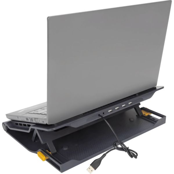 El cooler para notebook de 17" Targus Chill Mat+ AWE81US cuenta con todas las funciones importantes que necesitas cuando trabajas en tu escritorio. Un hub de 4 puertos USB incorporado le permite conectar todos sus periféricos a la vez. Los ventiladores duales mantienen su computadora portátil fresca, mientras que la altura ajustable le permite usarla como soporte para computadora portátil. Para mantener todos sus cables organizados, las correas de Velcro lo ayudan a mantener todo bonito y ordenado. El Chill Mat+ con Hub de 4 puertos es la solución ideal para los propietarios que buscan sacar el máximo provecho de su computadora portátil.