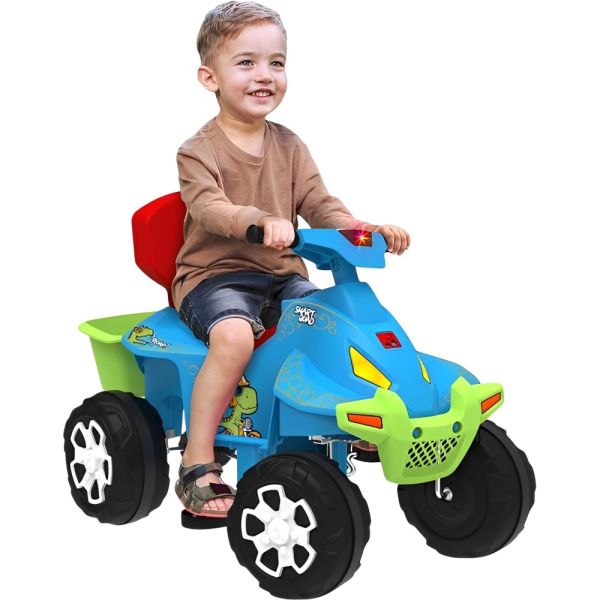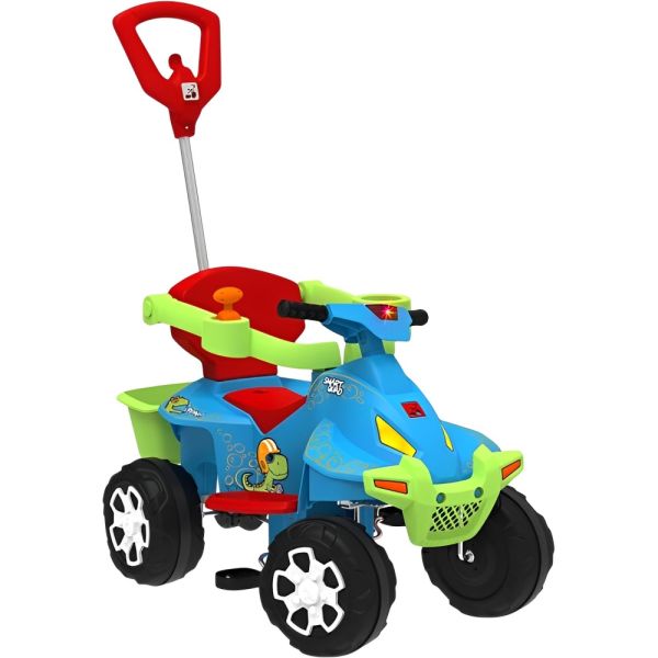 El Cuatriciclo Infantil Bandeirante Smart Quad Paseo y Pedal es el juguete perfecto para niños mayores de 12 meses, ofreciendo una experiencia divertida y segura, tanto para los pequeños como para los adultos. Este cuatriciclo cuenta con dos modos de uso: la función de paseo y la función de pedal. En la función de paseo, los adultos pueden controlar el cuatriciclo fácilmente mediante una varilla orientable, mientras que el niño puede disfrutar del paseo con total seguridad gracias a la carcasa protectora y el cómodo reposapiés. Para los pequeños aventureros, la función de pedal permite al niño pedalear libremente, removiendo la varilla y la protección. El diseño ergonómico incluye un manillar con lente y luz LED, un soporte para botella de agua, y un respaldo anatómico para mayor comodidad. Además, el cuatriciclo cuenta con un sistema de tracción Cardan, lo que proporciona una experiencia de pedaleo más ágil y cómoda.