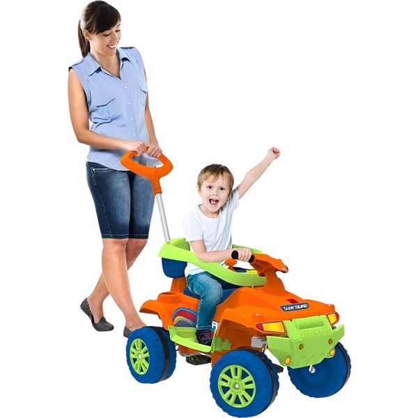 El Cuatriciclo Infantil Bandeirante Super Quad Paseo & Pedal es versátil y divertido que combina comodidad y funcionalidad para adultos y niños, ideal para pasear o pedalear.