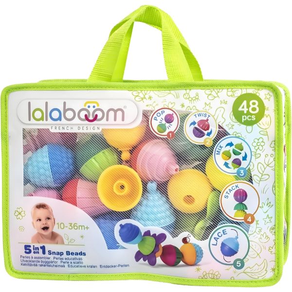 Las cuentas educativas para bebé Lalaboom BL460 5 en 1 - 48 piezas, son el juguete perfecto para estimular el aprendizaje y la creatividad de los más pequeños. Con esta divertida y colorida colección de cuentas, los bebés pueden explorar diferentes formas, texturas y colores, fortaleciendo su motricidad fina y desarrollando sus habilidades cognitivas. Cada una de las 48 piezas de este set está cuidadosamente diseñada para ser segura y fácil de manipular por los bebés. Además, estas cuentas son intercambiables, por lo que pueden ser ensambladas y desarmadas de diferentes maneras, brindando una experiencia de juego versátil y dinámica. Las cuentas Lalaboom BL460 5 en 1 están fabricadas con materiales duraderos y de alta calidad, garantizando que soporten el uso diario y el paso del tiempo. Además, su diseño atractivo y llamativo captará la atención de los bebés, manteniéndolos entretenidos durante horas.