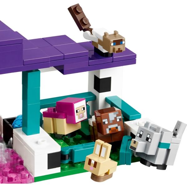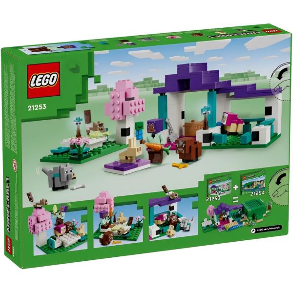 El Santuario de Animales LEGO Minecraft 21253 es un set diseñado para niños a partir de 7 años, incluye 206 piezas y ofrece horas de diversión creativa. Entre las figuras incluidas se encuentran adorables animales bebés de Minecraft como un gato, una oveja, un lobo, un conejo, una vaca, e incluso un zombi bebé. Además, presenta a Efe, un personaje exclusivo de LEGO Minecraft que hace su primera aparición en este set. El Santuario de Animales LEGO Minecraft está ambientado en el bioma Llanura y se divide en tres secciones distintas: un espacio de juego vallado, una sala de alimentación, un área de pícnic al aire libre y una alfombra acogedora donde los animales pueden descansar. Con dimensiones de aproximadamente 8 cm de altura, 14 cm de anchura y 6 cm de profundidad, este set es el complemento perfecto para cualquier colección de LEGO. El set ofrece fácil montaje y un diseño que estimula la imaginación y la creatividad de los niños. Fomenta el juego simbólico y les permite recrear sus aventuras favoritas de Minecraft.