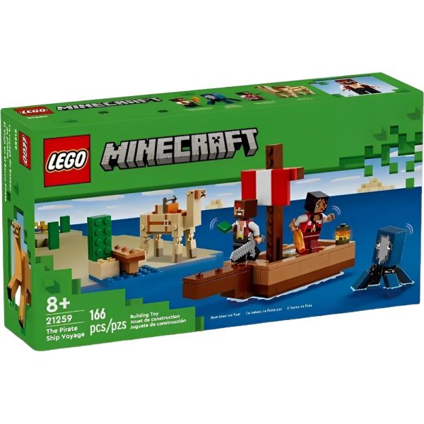 Este magnífico set de construcción "El Viaje en el Barco Pirata Lego Minecraft 21259" está diseñado para los aficionados de Minecraft mayores de 8 años, ofreciendo un mundo de posibilidades creativas con sus 166 piezas. Con la franquicia Lego y Minecraft unidas, este juego no solo garantiza diversión, sino también el desarrollo de habilidades cognitivas, creatividad, y motricidad fina. El set incluye un impresionante barco pirata, un calamar, un camello, y dos valientes minifiguras piratas: un espadachín y un bucanero. Además, cuenta con emocionantes accesorios como un pez, un mapa, una espada de hierro y un cactus que pueden ser sostenidos por las figuras. Este barco de juguete, que mide más de 10 cm de alto, 14 cm de largo y 5 cm de ancho, es perfecto para recrear batallas épicas y aventuras marinas. Fabricado en plástico de alta calidad, este set es ideal para estimular la imaginación de los niños, proporcionándoles horas de entretenimiento y aprendizaje. Es el regalo perfecto para cualquier joven constructor y fan de Minecraft que busca vivir una experiencia de juego única y envolvente.