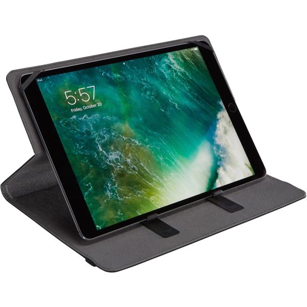 El estuche Case Logic CBUE-1210 es una cubierta protectora que proporciona un ajuste seguro y ángulos de visión ajustables para una variedad de tabletas de 9 a 11". Folio universal tipo folleto que se ajusta para adaptarse a la mayoría de las tabletas de 9 a 11" de hasta 26.2 x 17.8 x 1.0 cm. La tableta se mantiene segura en su lugar con bucles de silicona flexibles y clips de plástico estables. Los ángulos de visión micro ajustables optimizan la posición de la tableta para su uso en cualquier entorno y ofrece un cierre elástico seguro.