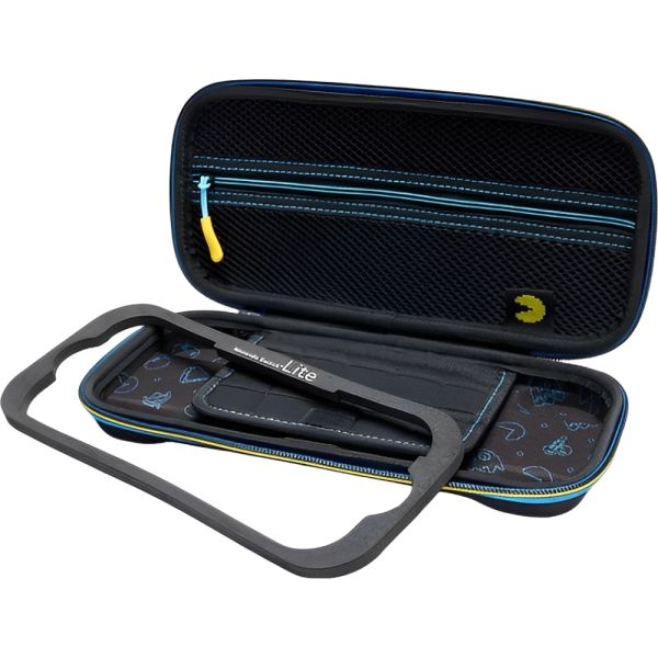 El Estuche Protector PowerA PAC-MAN Retro Arcade para Nintendo Switch (PWA-A-14191) es la combinación perfecta de estilo retro y protección avanzada para tu consola. Con un diseño inspirado en el clásico juego de arcade PAC-MAN, este estuche presenta gráficos vibrantes que evocan la nostalgia de los videojuegos vintage. Compatible con Nintendo Switch, Switch OLED y Switch Lite, su carcasa rígida exterior protege tu consola contra golpes y caídas, mientras que el interior de fieltro suave evita rayaduras. El estuche incluye un compartimento que guarda hasta 9 cartuchos de juego, manteniendo tus títulos organizados y al alcance. Además, tiene un bolsillo de malla con cierre, perfecto para almacenar cables, audífonos y otros accesorios pequeños. Con un cierre de doble cremallera y una cómoda asa de goma, el transporte es rápido y seguro. Con licencia oficial de Nintendo, este estuche ofrece calidad y autenticidad. Ideal para los jugadores que buscan protección y un toque de nostalgia en su equipo de juego. El PAC-MAN Retro Arcade es una excelente opción para quienes quieren llevar su Switch con estilo.