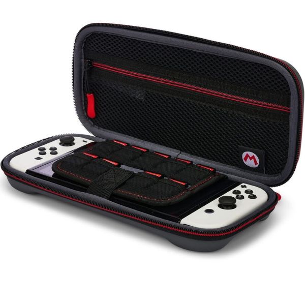 El estuche PowerA PWA-A-02860 te permite transportar tu Nintendo Switch con licencia de Nintendo sea donde sea y con la mayor seguridad con el estuche protector. La carcasa exterior resistente con mango de goma y tiradores de cremallera dobles duraderos. El diseño de este bolso está inspirado en el clásico juego de Super Mario y está equipado con una bolsa de almacenamiento interna para guardar los cables y otros accesorios.