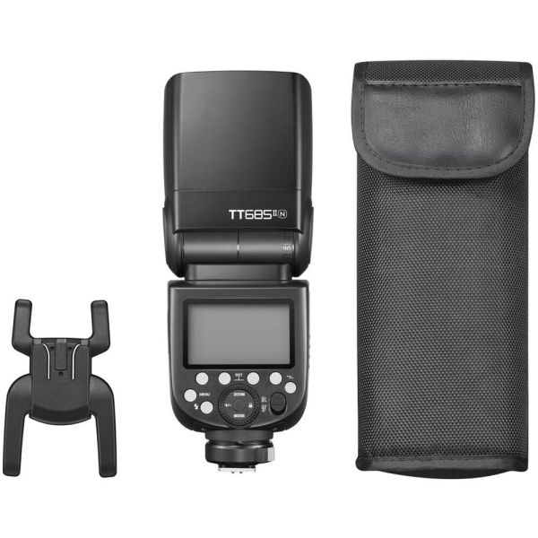 El flash Godox TT685 II tiene un diseño ultra compacto, posee funciones avanzadas que incluyen sincronización de alta velocidad, un sistema de radio integrado de 2.4 GHz. Ofrece un soporte completo que facilita la creación de configuraciones de iluminación simples y elaboradas. Este flash Godox le brinda un número de guía de 197' a ISO 100 con un rango de zoom de 20-200mm y tendrá el poder de iluminar la mayoría de las escenas que encuentre con facilidad. Es totalmente compatible con el modo TTL de Nikon, por lo que puede utilizar funciones más versátiles, como alta sincronización de hasta 1/8000 s, para efectos creativos, y gira 330°, lo que le brinda ángulos de flash más flexibles y un proceso de configuración de iluminación más eficiente. Funciona con 4 pilas AA (no incluidas) que podrás reemplazar o recargar en cualquier momento. El sistema X inalámbrico integrado aumenta las posibilidades de uso que te permitirá manejar el flash tanto como un transmisor como un receptor. Además, tiene un panel LCD para poder leer la configuración de forma rápida y sencilla.