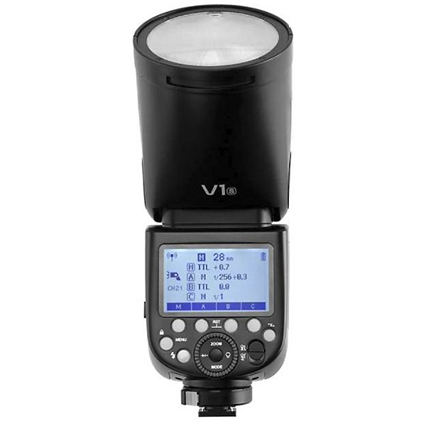 El flash Godox V1 tiene un nuevo diseño compacto de cabeza redonda de mejor difusión con un cabezal de alto rendimiento, ofrece una potente salida de 76W, totalmente compatible con las funciones TTL. Proporciona una luz suave y uniforme con una caída gradual que aumenta la salida favorecedora. Tiene un receptor de 2.4 GHz incorporado, para señales de los transmisores Godox X y es compatible con sincronización de alta velocidad de hasta 1/8000 segundos para administrar fondos brillantes y disparar con aperturas amplias. La cabeza redonda también es magnética, lo que le permite conectar los accesorios de cabeza redonda magnética de Godox. Presenta una duración de flash excepcional de 1/20000 segundos que brinda imágenes nítidas. El cabezal gira 330° y se inclina de -7 a 120°. Además, el V1 funciona con una batería de iones de litio extraíble de 2600mAh que le proporcionará hasta 480 flashes a plena potencia con una carga.