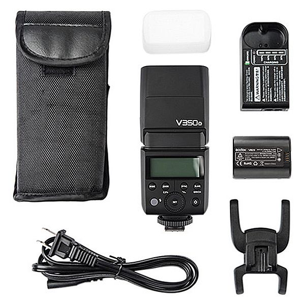 El flash Godox V350 tiene un diseño ultra compacto posee funciones avanzadas que incluyen sincronización de alta velocidad, un sistema de radio integrado de 2.4 GHz. Utiliza el sistema X de Godox pudiendo operar combinado con disparadores remotos o controladores a distancia, así como flashes que dispongan de modo maestro. Posee un diseño liviano y un número de guía de 118' a ISO 100 y 105mm y es útil tanto para operaciones dentro como fuera de la cámara. También se puede usar como un esclavo óptico además de usarlo como una unidad maestra/esclava de radio TTL. Cuenta con cabezal inclinable desde -7° hasta 90° y puede girar 270°. Proporciona una amplia iluminación para la mayoría de los sujetos. Además, funciona con batería recargable de iones de litio para una mejor autonomía y garantiza una recarga rápida con una capacidad de hasta 500 flashes de máxima potencia.