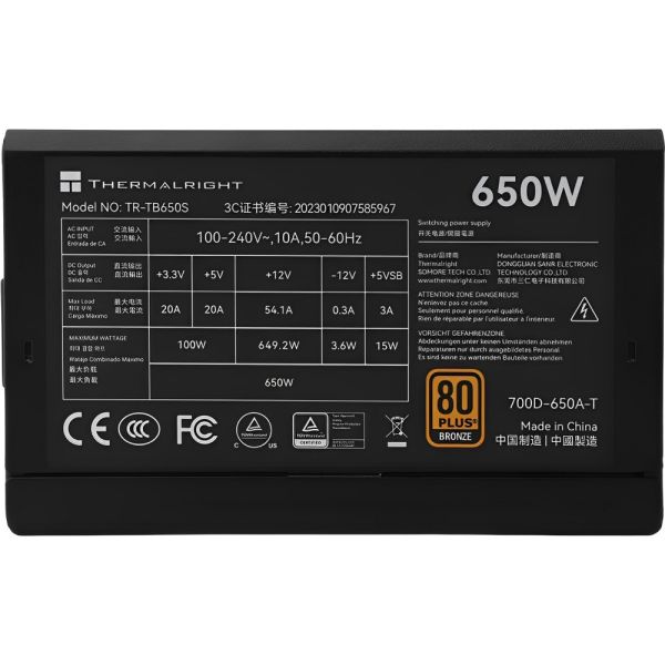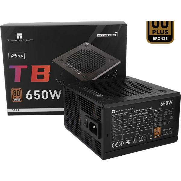 La Fuente de Alimentación Thermalright 80 Plus Bronze 650W es la solución ideal para entusiastas de los videojuegos y profesionales que requieren un rendimiento excepcional y confiabilidad en sus sistemas de escritorio. Con un diseño en negro elegante y una estructura ATX, esta fuente de alimentación está diseñada para adaptarse a la mayoría de los gabinetes estándar, garantizando un ajuste perfecto y una instalación sin complicaciones. Su potencia de 650 W es más que suficiente para alimentar equipos de alto rendimiento, incluidos aquellos que integran múltiples componentes de alto consumo energético como tarjetas gráficas avanzadas y múltiples discos duros. La certificación 80 Plus Bronze asegura una eficiencia energética del 80%, lo que se traduce en un menor consumo de energía y menos calor generado, optimizando así el rendimiento general del sistema. Equipada con conectores SATA y un conector de interfaz 20+4 pines, esta fuente es compatible con una amplia gama de configuraciones de hardware. La Thermalright TR-TB650S incluye un sistema de PFC activo para mejorar la entrega de energía y reducir el ruido eléctrico, asegurando una experiencia de usuario más estable y silenciosa. Esta fuente es perfecta para quienes buscan calidad superior y estabilidad robusta sin comprometer el rendimiento de sus PCs de escritorio o servidores personales.