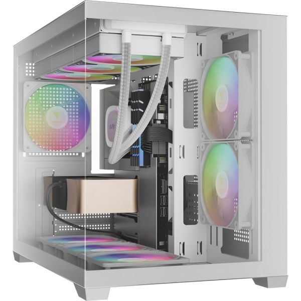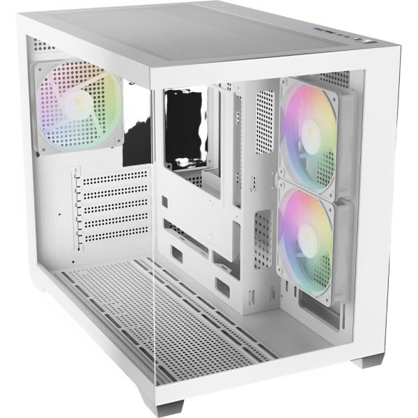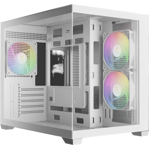 El Gabinete Gamdias Aura GC10M ARGB Micro Tower es la elección perfecta para los entusiastas del gaming que buscan estilo y funcionalidad en un diseño compacto. Con su pantalla de cristal templado sin juntas, esta microtorre ofrece una vista panorámica impresionante que destaca cada componente de tu configuración. Equipado con tres ventiladores ARGB de 120 mm, dos en admisión inversa y uno en escape, garantiza un flujo de aire óptimo y efectos visuales impresionantes controlados mediante la placa base o el botón de LED. Diseñado para facilitar la instalación, el Gabinete Gamdias Aura GC10M cuenta con un mecanismo de cierre sin herramientas, lo que significa que puedes acceder al interior sin complicaciones. Esta microtorre es compatible con placas base Mini-ITX y Micro-ATX, y ofrece espacio suficiente para instalar GPU de hasta 400 mm, asegurando que puedas actualizar tus componentes sin restricciones.