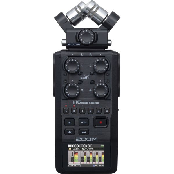 La grabadora de audio Zoom H6 es una grabadora de mano portátil con interfaz de audio USB con un sistema de micrófono intercambiable. Ideal para bandas, multi multiinstrumentistas y podcasters, la grabadora portátil Zoom H6 le permite grabar rápidamente hasta seis señales de entrada simultáneas. Con dos capsulas de micrófono estéreo intercambiables, seis entradas versátiles de micrófono/línea y grabación de hasta 6 pistas, el H6 es fácil de usar y fácil de ampliar.