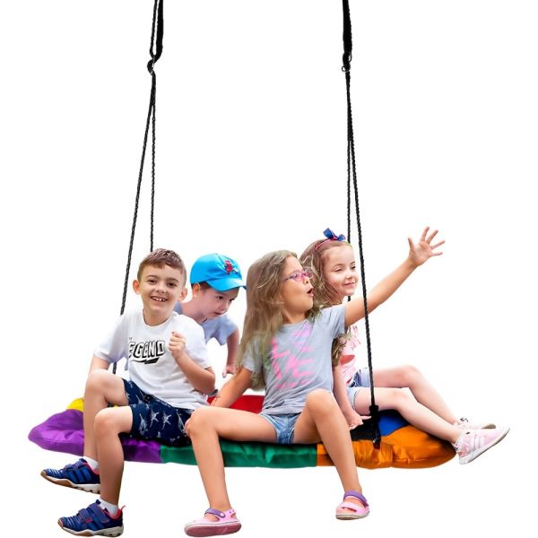 La hamaca rectangular QRubber Glow Up es el complemento perfecto para cualquier espacio de juego infantil. Diseñada con una versatilidad increíble, puede usarse tanto como un columpio clásico como un asiento para balancearse, proporcionando horas interminables de diversión y entretenimiento para niños de todas las edades. La construcción robusta y duradera de la hamaca está garantizada gracias a sus materiales de alta calidad, incluyendo tejido oxford 900D y aleación de acero. Su estructura resistente soporta hasta 150 kg, asegurando tanto la durabilidad como la seguridad para los pequeños aventureros. Además, es resistente a la intemperie y cuenta con protección contra rayos UV, ideal para el uso exterior sin preocupaciones. La instalación de la es simple y rápida, permitiendo a los niños disfrutar de su nueva área de juegos en minutos. Su diseño multicolor vibrante no solo atraerá la atención, sino que también fomentará el reconocimiento de colores.