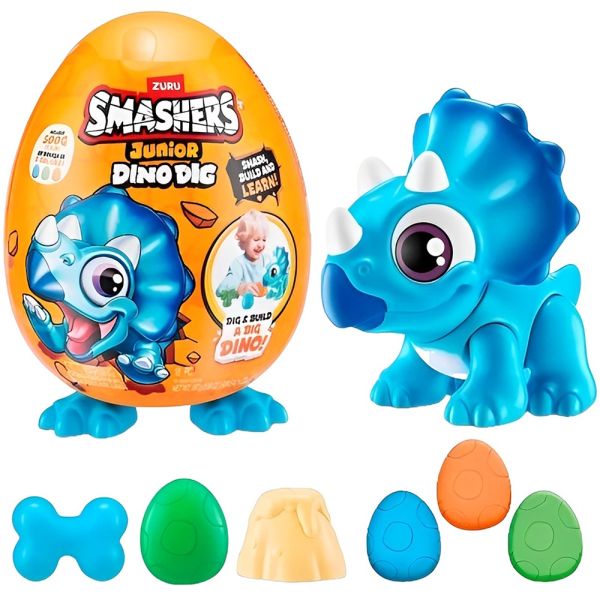 El Huevo de Dinosaurio Zuru 4116 Smashers Junior Dino Dig - Mediano es una aventura llena de sorpresas para pequeños exploradores. Contiene 18 sorpresas, incluyendo piezas para construir un dinosaurio, 500g de masa para moldear, moldes, adhesivos y más. Este juguete estimula la creatividad y la resolución de problemas a través de una divertida actividad de excavación sensorial. Ideal para niños a partir de 3 años, fomenta la imaginación, la coordinación y el juego interactivo. Su diseño colorido y temático encanta a los fanáticos de los dinosaurios y convierte cada excavación en una experiencia única. Perfecto para regalar en cumpleaños o eventos especiales, el Huevo Smashers ofrece una expedición jurásica inolvidable en cada apertura. Rompe, excava y crea tu aventura jurásica.