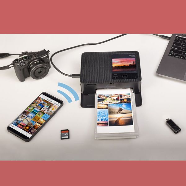 La impresora fotográfica compacta Selphy CP1500 le ofrece la creatividad que necesita en un equipo portátil y elegante. Crea impresiones vivas, duraderas y de alta calidad donde quieras y en cuestión de segundos con esta impresora fotográfica compacta y fácil de usar. Imprima fotos vibrantes y de estilo profesional desde una tarjeta de memoria, una unidad flash USB o una conexión de computadora con la ultracompacta, es una impresora fotográfica portátil que admite cuatro tamaños de papel diferentes, incluidas pequeñas etiquetas adhesivas. Incluye un juego de tinta y papel para imprimir impresiones de tamaño postal de 4 x 6", la impresora a Selphy imprime fotografías vívidas con una resolución de 300 x 300 ppp y 16.7 millones de colores. Una imagen del tamaño de una tarjeta postal tarda aproximadamente 41 segundos en imprimirse, y una impresión del tamaño de una tarjeta de crédito tarda unos 23 segundos. Cuenta con una fuente de alimentación de CA, también es compatible con la batería opcional Canon NB-CP2LH, que permite hasta 54 impresiones con una sola carga. Posee ranura para tarjeta SD que admite directamente una tarjeta de memoria SD, SDHC o SDXC. También cuenta con conectividad Wifi incorporado, para que se pueda sincronizar con su teléfono inteligente o tableta para trabajar con la aplicación Selphy Layout o la aplicación Canon PRINT, ambas compatibles con iOS y Android.