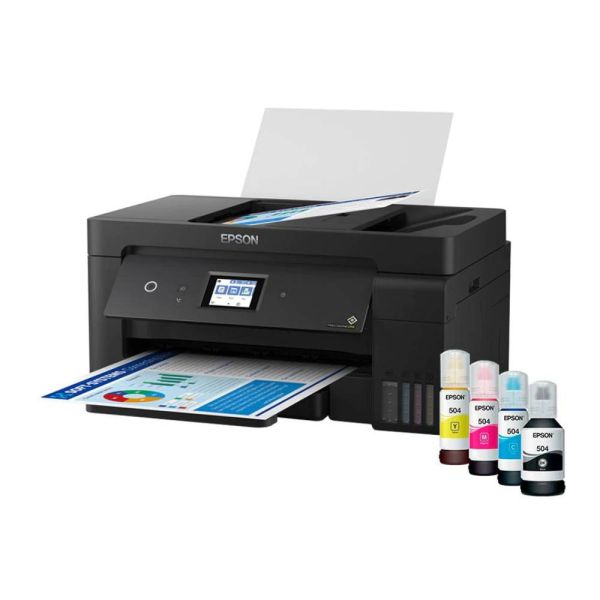 La impresora Epson EcoTank L14150 inalámbrica multifuncional es capaz de imprimir, copiar y escanear, te ofrece la revolucionaria impresión sin cartuchos, con nuevo diseño de tanques frontales, botellas de tinta con llenado automático y codificadas para llenado fácil de color.La impresora EcoTank L14150 te permite imprimir hasta 7.500 páginas en negro o 6.000 páginas a color. Imprime sin la necesidad de una PC, gracias a su pantalla de 2.4". Cuenta con conectividad de red avanzada: Wifi, Wifi Direct, Ethernet para compartir y agregar fácilmente a tu grupo de trabajo.Especificaciones: