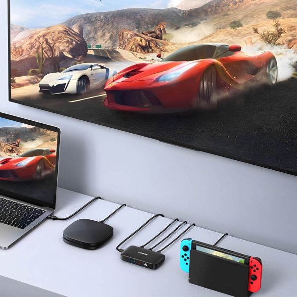 El Interruptor HDMI Ugreen CM332 3 en 1 4K 80125 en color negro es la solución ideal para conectar múltiples dispositivos HDMI a una sola pantalla. Diseñado para usuarios que buscan comodidad y eficiencia, este conmutador permite gestionar la transmisión de video y audio desde tres dispositivos diferentes a un único monitor o televisor. Equipado con dos métodos de conmutación, manual y por control remoto, el Ugreen CM332 asegura una experiencia de usuario sin interrupciones, eliminando la necesidad de cambiar cables constantemente. Gracias a su práctico control remoto IR, puedes cambiar entre dispositivos desde la comodidad de tu sofá o cama, hasta una distancia de 4.57 metros. Este interruptor HDMI soporta resoluciones Ultra Full HDR de hasta 4K a 30Hz, garantizando imágenes excepcionales y un sonido claro, ideal para disfrutar de películas, series o videojuegos con calidad cinematográfica. Compatible con dispositivos HDMI 1.4 y equipado con HDCP 1.4/CEC, su rendimiento es óptimo al estar conectado a una fuente de alimentación USB de 5V. Su interfaz HDMI y USB Tipo C lo convierte en una herramienta versátil para cualquier entorno multimedia.