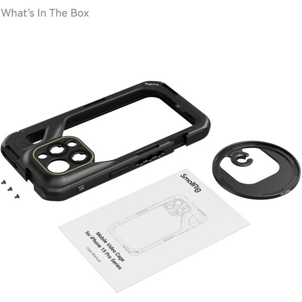 Transforma tu teléfono inteligente en una plataforma de filmación móvil con la incorporación de esta jaula de video móvil para iPhone 15 Pro de SmallRig . La jaula es el núcleo de la plataforma móvil que puedes personalizar con una variedad de accesorios opcionales. Fija elementos a una gran cantidad de soportes roscados de 1/4"-20 y zapata fría, como luces LED, manijas y un micrófono. También se admiten accesorios de liberación rápida de SmallRig compatibles. Mejora aún más el contenido con lentes opcionales, lo que aumenta el sistema existente de tu iPhone. Se incluye una placa posterior de montura M de 67 mm, pero hay placas posteriores opcionales disponibles para otros tipos de lentes. Una conveniente puerta con bisagras te permite comenzar rápidamente. Presiona el botón para deslizar fácilmente tu teléfono, mientras que el acolchado de silicona integrado lo protege de daños.