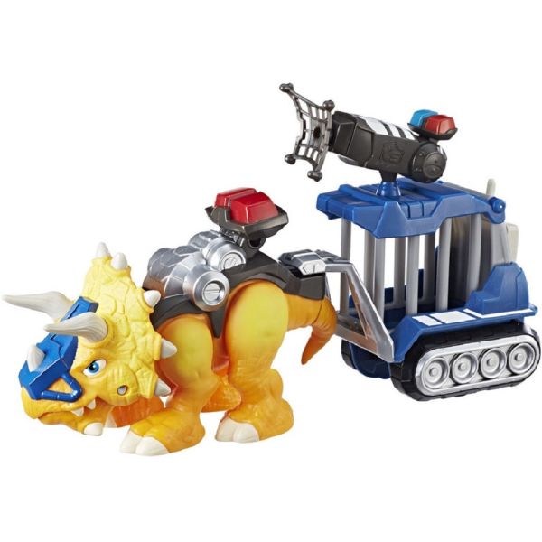 Set de juguete con luces y sonidos para garantizar el entretenimiento y la diversión de los niños. Incluye Oficial de Bloqueo de la figura, remolque, jaula, lanzador de proyectiles y 1 proyectil. Es el regalo perfecto para los niños que aman los dinosaurios.