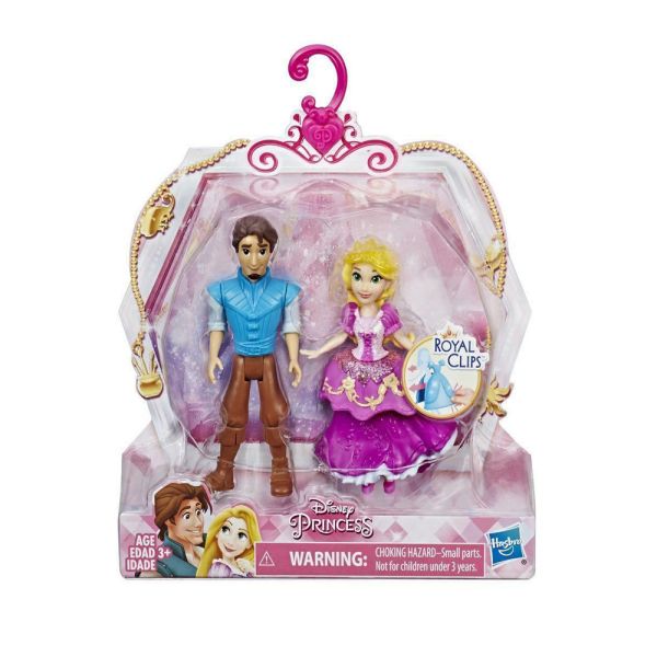 El juguete Hasbro Disney Princesa Rapunzel Y Eugene presenta a los personajes de Disney que incluye 2 figuras, estos conjuntos de un solo clip están diseñados para cambios de vestuario rápidos y sin problemas, cada muñeca viene con su color característico.El juego permite a los más pequeños recrear momentos mágicos, imaginado aventuras con sus personajes favoritos de Las Princesas Disney.