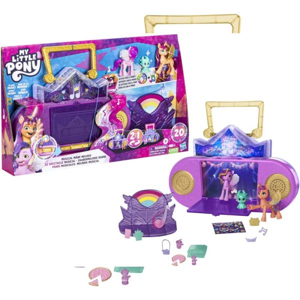 El Juguete Hasbro My Little Pony Musical Melody es el salón y sala de karaoke de Princess Pipp Petals. Inspirado en una ubicación de la serie My Little Pony: Leave Your Mark. Por un lado, tiene un salón de belleza con un secador de pelo de juguete, un mueble para accesorios y un espejo arcoíris de juguete. Abre el otro lado del set para revelar un escenario de karaoke de juguete con luces y sonidos. Viene con 16 accesorios, una hoja de calcomanías y 2 dijes de Cutie Mark.