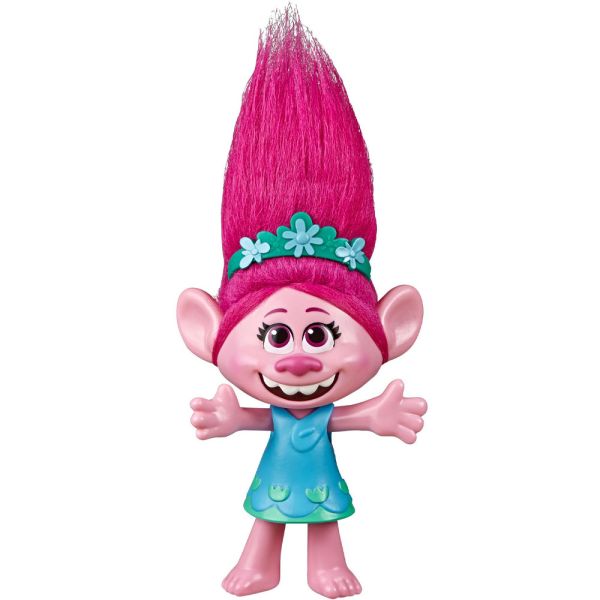 Muñeca de juguete con sonido, presiona el botón en el torso de la figura y ella cantará Trolls Just Want To Have Fun, como lo hace en la película Trolls World Tour. En la secuela de Trolls de DreamWorks, la reina Poppy y sus amigos embarcan en una grandiosa y fantastrolística aventura para salvar la música. Imagina que acompañas a Poppy en una aventura musical, recrea tus escenas favoritas de la película o crea tus propias historias con este juguete musical.