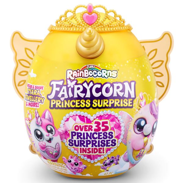 El Juguete Huevo de Unicornio Zuru Rainbocorns Fairycorn Princess te trae la magia de la realeza. Cada Fairycorn viene repleto de más de 35 sorpresas, incluyendo una tiara de princesa y una varita mágica. Las niñas pueden compartir estos accesorios con su Rainbocorn, transformándolos a ambos en Hadas Princesas. Además, los Rainbocorns Fairycorn Princess cuentan con alas portátiles para una combinación aún más encantadora con tu nuevo y tierno mejor amigo. Colecciona los 6 Fairycorns, cada uno con un corazón que revela sorpresas sobre lo que les encanta. ¡Descubre la magia y la diversión con estos adorables personajes!