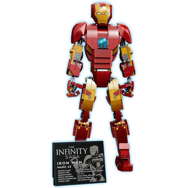 Basada en el personaje de Iron Man de Vengadores: La Era de Ultrón, el éxito de Marvel Studios, esta realista recreación completamente articulada permite a los niños colocar la figura Lego Marvel Super Heroes Iron Man en diferentes posturas mientras luchan en emocionantes misiones. El ladrillo con luz que se acciona al pulsar un botón ilumina el reactor ARC del torso de Iron Man, aportando más realismo. Cuando no esté salvando el universo, la maqueta de Iron Man quedará genial expuesta e incluye una placa decorativa desmontable con detalles sobre el icónico Vengador blindado.